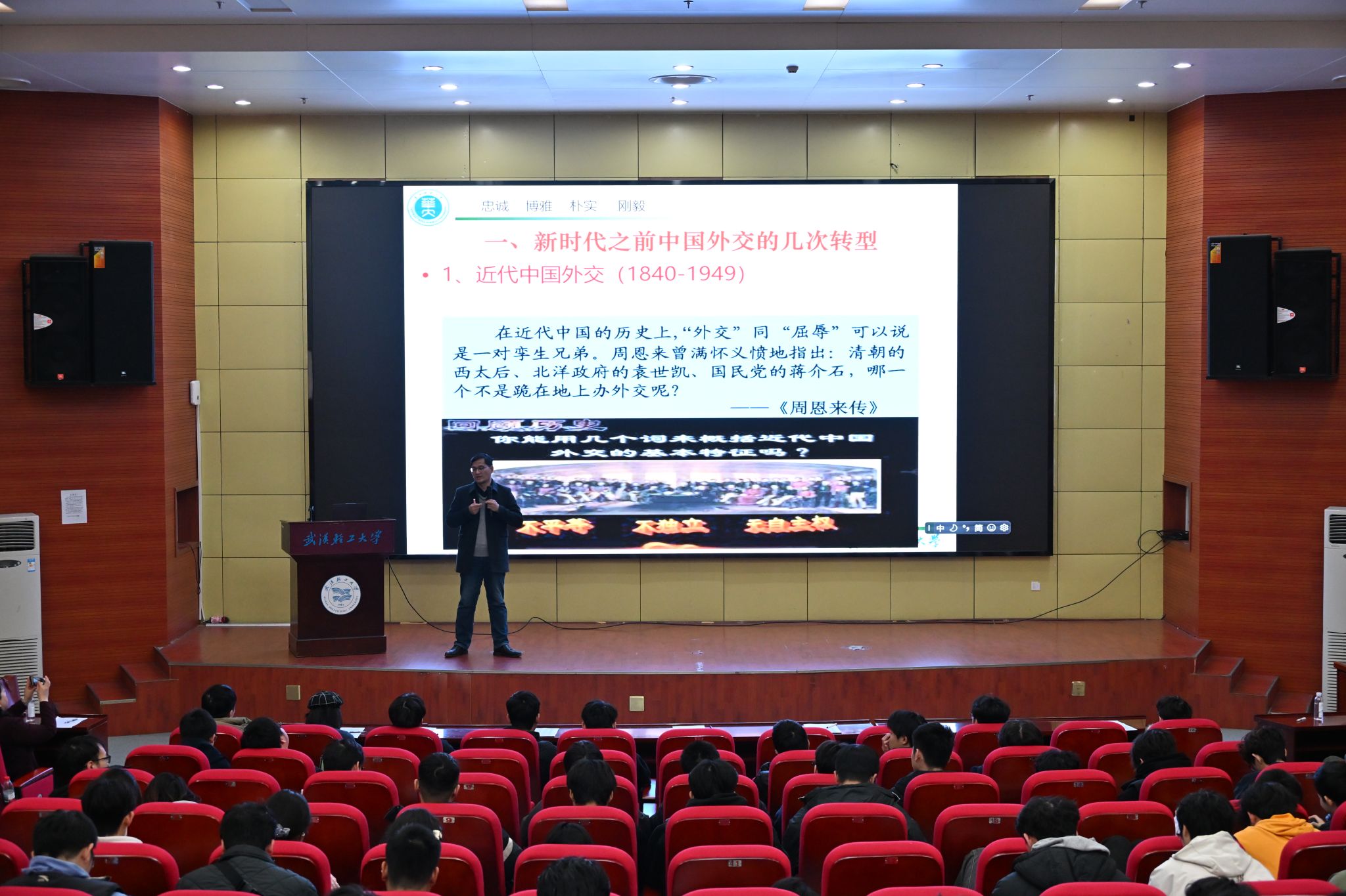 为厚植师生家国情怀,树立国际视野,深入了解新中国外交发展历程3 月 19 日下午,学院在金银湖校区恒青图书馆三楼报告厅顺利举办开展 “新时代的中国外交” 主题讲座。本次讲座特邀华中师范大学马克思主义学院张安教授主讲,学院党委书记史理及全体师生到场聆听。