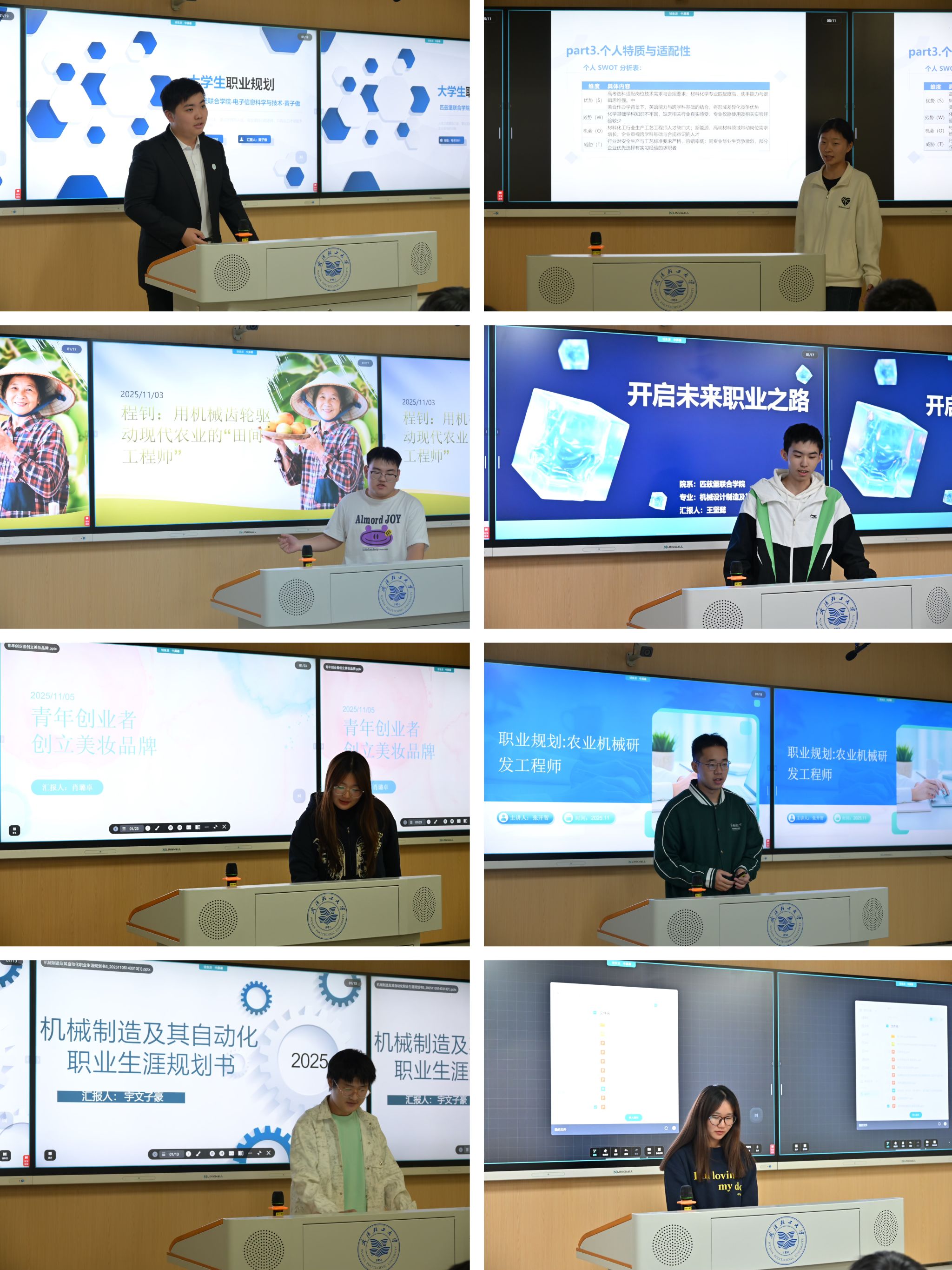 选拔赛采用“现场展示答辩”与“评委提问”相结合的形式。参赛选手们围绕自我认知、职业认知、职业目标与路径设计、评估与调整等方面,进行了详细的阐述与精彩的展示。整场比赛组织有序,氛围热烈,充分展现了匹兹堡学院2025级新生对未来的憧憬与探索精神。