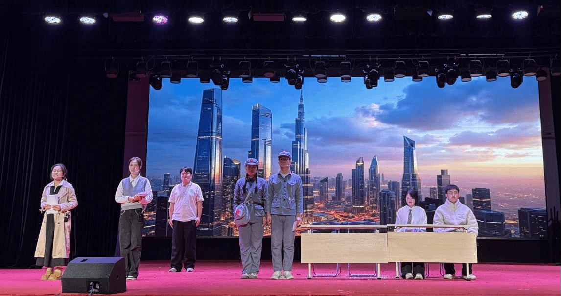 由我院学生参演的话剧《译路薪火》成为晚会的亮点之一。该剧以跨越时空的对话为线索,通过当代学生与革命先烈之间的精神对话,展现了不同时代青年在文化交流使命上的薪火相传。演出过程中,时空交错的舞台设计、富有张力的台词交锋,让台下观众沉浸其中,时而为两个时代的共鸣而会心微笑,时而为精神的传承而感动沉思,表演结束时掌声持续良久。