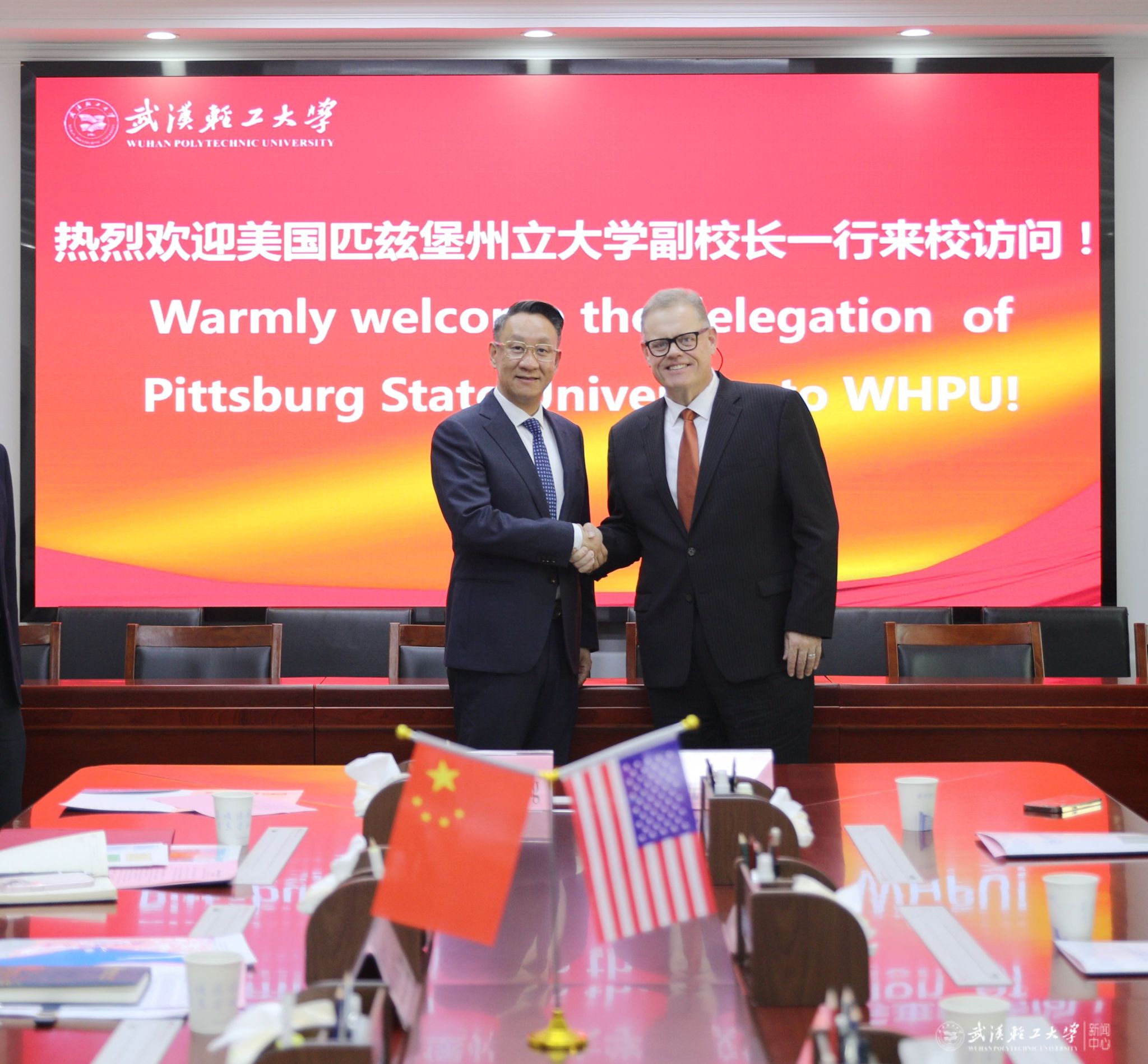 2026年1月13日至14日,美国匹兹堡州立大学副校长卡尔·斯图默(Mr.Karl Stumo)、国际合作部主任艾伦·赫特(Mr.Aaron Hurt)一行访问我校。校党委书记严冀钢亲切会见代表团一行并举行座谈交流,副校长王宏勋、丁华锋参加相关交流活动。